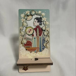 Madera o bambú Fábrica Libre Personalizado Corte láser Grabado Soporte para Teléfono Celular Soporte para teléfono móvil Estilo clásico chino